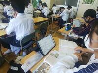 7月13日(水)、2年生の授業を参観です。美術はデッサンと色塗り、英語はイヤホンでヒヤリング、理科は気孔をAppleTVで写しました。