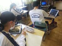 7月14日(木)、2年生の授業を参観です。英語はイヤホンでリスニング、数学は連立方程式を教え合い、国語ではオンラインで参加する生徒もいました。