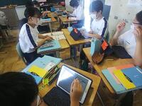 7月8日(金)、特別支援学級の授業です。英語は文章読解、数学は時計の読み取りと、空間図形です。