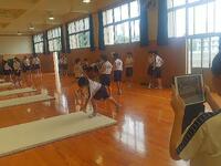 7月25日(月)、夏休みの部活動のスタートです。体育館は暑いです。熱中症対策をしながらの活動です。今日は小学生が見学です。