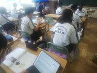 7月20日(水)、特別支援学級の授業を参観です。理科は燃焼実験のまとめ、数学は統計、技術科はタイピング練習です。