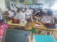 7月7日(木)、七夕です。2年生は理科で植物の細胞を観察、英語はデジタル教科書、国語は文章解釈をしました。