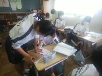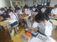 7月1日(金)、1年生の授業を参観です。国語は答え合わせ、数学も答え合わせ、理科はイカの解剖のレポートです。
