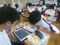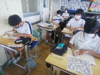 9月14日(水)、2年生の英語授業を参観、国語は主人公の心情、英語はスピーキング、美術は色塗りです。