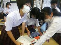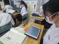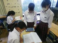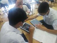 9月13日(火)、1年生の社会科で研究授業を行いました。教材は藤原氏で、三島市教委から指導主事が訪れ、タブレットを使った新時代の教育を見ていただきました。