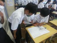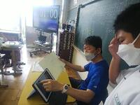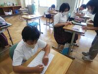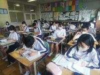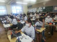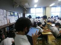 9月7日(水)、3年生の英語授業を参観、英語は明日の定期テストの勉強、技術科は時間内早打ちの練習、社会科はグループでまとめです。