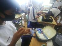 9月7日(水)、特別支援学級の家庭科授業を参観、裁縫道具を確認し、何のために使うのかを発表します。