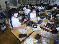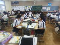9月12日(月)、2年生の授業を参観、英語はヒアリング、国語は文章解釈、家庭科はビタミン不足を調べました。