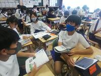 9月15日(木)、特別支援学級の授業を参観、英語は教員が自宅から授業、数学は習熟度別に勉強です。