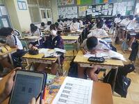 9月1日(木)、特別支援学級の授業、英語は自習中、数学は習熟度別に分かれ、四則計算をしました。