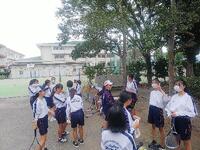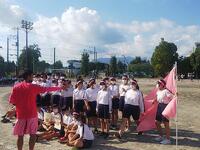 10月3日(月)、振替休日、感染症に負けない体づくりです。サッカー部は3年生と対抗試合です。