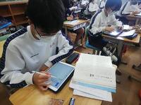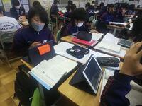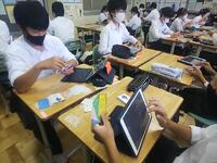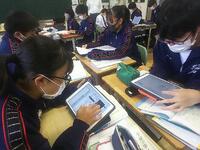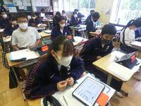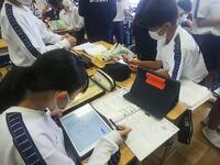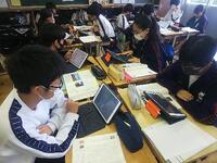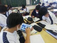 10月8日(土)、1年生の数学授業を参観、eライブラリーで単元のまとめです。