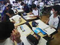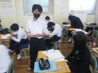 10月13日(木)、1年生の英語授業、題材は英作文です。英語で作文、発音練習した後、教師に披露です。