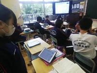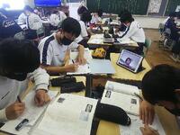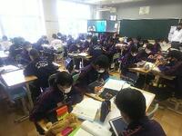 10月18日(火)、南中に市内の英語教員が集まって、研究授業です。まずは自分の考えを入力します。
