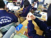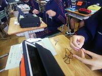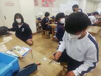 10月26日(水)、特別支援学級の家庭科授業です。設計図を確認し、裁断し、ミシンで縫い上げます。