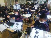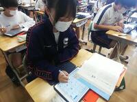10月14日(金)、1年生の授業を参観、家庭科は裁縫、国語は毛筆、数学は比例の計算です。