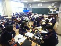 10月13日(木)、3年生の国語授業です。教材は短歌、グループで考えたことを発表です。