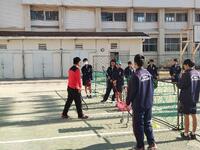 錦田中が合同練習、バレー部は体幹を鍛えます。