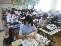 9月21日(水)、2年生の授業を参観、美術は水彩画、国語は毛筆、英語はペアでリスニングの内容確認です。