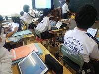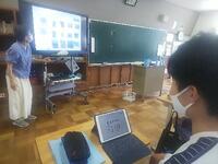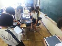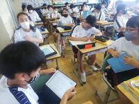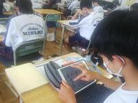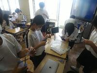 7月7日(木)、七夕です。2年生は理科で植物の細胞を観察、英語はデジタル教科書、国語は文章解釈をしました。