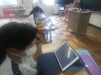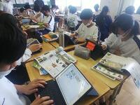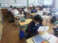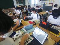 7月5日(火)、1年生の社会科授業です。弥生時代の住居、集落、生活などを調べました。