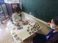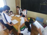7月6日(水)、1年生の昼休みです。合唱曲を調べている班、ひいらぎ祭の掲示物を作っている生徒、ひいらぎ祭の係を決めているクラスと様々です。