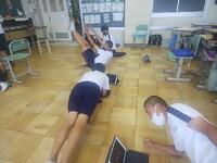 7月4日(月)、雨天です。部活動はミーティング、室内トレーニングをしています。パソコン部は3年生の活動が終了します。