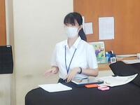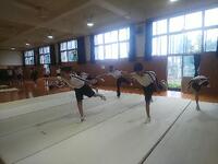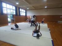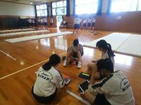 9月7日(水)、3年生の保体授業を参観、新体操のチーム練習です。プログラム通りに演技をし、動画で振り返ります。