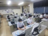 9月7日(水)、雨天のため外の部活動は室内練習です。工夫しながら汗を流しています。パソコン部は真剣です。