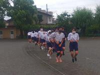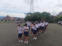 9月8日(木)、2年生のひいらぎ祭の練習、運動場で長縄、廊下でリレーの順番、教室で指揮練習です。