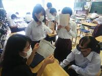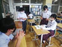 9月8日(木)、3年生は定期テストです。昼休みは担任と一緒に5時間目のテストの準備です。