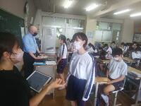 9月9日(金)、3年生の英語授業を参観、理科は細胞分裂、保体は新体操のイメージ、英語はスピーキングです。