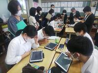 10月18日(火)、南中に市内の英語教員が集まって、研究授業です。教員がAppleTVを使い、生徒は自分の考えをチェックします。
