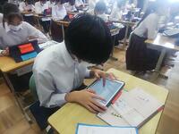 10月18日(火)、南中に市内の英語教員が集まって、研究授業です。まずは自分の考えを入力します。