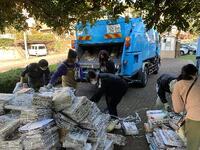 新聞や雑誌の他、段ボールやアルミ缶、牛乳パックなどもたくさん出していただき、最後の方は、収集車に入らないぐらいの量となりました。