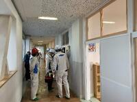 3年生と4年生の教室工事が本格的に始まりました。現在は天井を張り替える作業中です。壁や床など、色々な箇所がきれいになっていきます。
