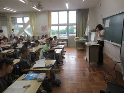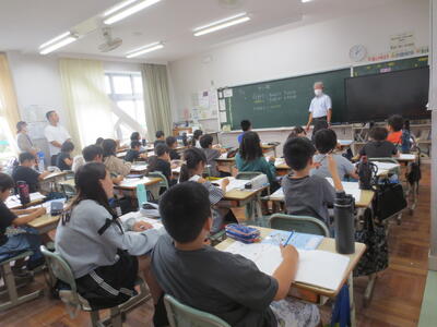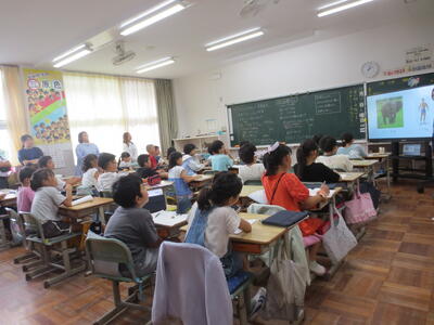 4年国語の授業の様子です。「未来につなぐ工芸品」の学習活動で、今日は、ゲストティーチャーとして用務員さんにお願いし、伝統工芸について、学びました。30年以上、人形店のお仕事をしていた経験から、雛人形や兜、鯉のぼりなど、お話を聞きました。子供たちは、真剣にメモをとったり、質問をしたりしていました。