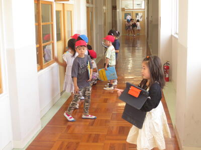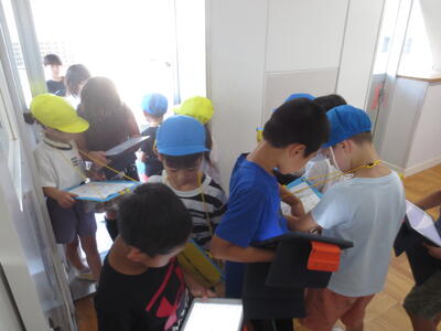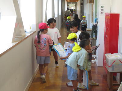 2年生が1年生に学校を案内してくれました。「ここが校長室だよ。校長先生がお仕事しているよ。」とタブレットを見ながら一生懸命説明する姿は、さすがお兄さん・お姉さんの2年生だなと感じました。1年生もとっても楽しそうでした。