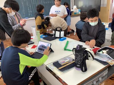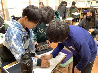 未来につなぐ工芸品を学習し、工芸品の良さを伝えたいとリーフレットを作っていました。相手によりわかりやすく伝えるために、様々な方法で推敲をしました。友達とアドバイスを送り合ったり、先生に相談したり、一人で集中して考えたり、一生懸命学習している様子がうかがえました。