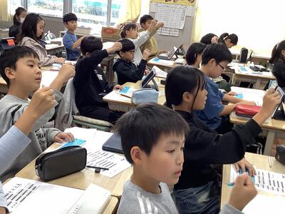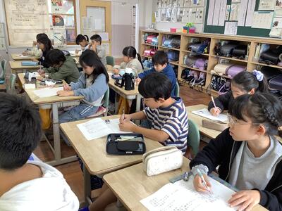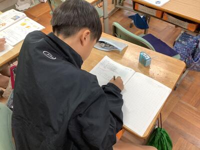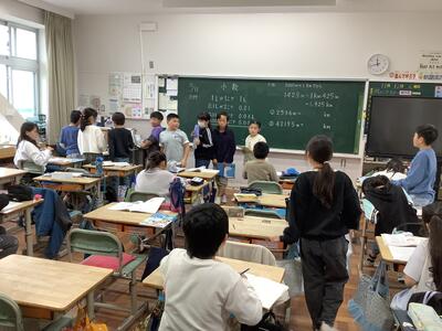 小数の位取りを学習していました。1より小さな数をどう書き表すかが、難しいですね。みんな丁寧にノートにしっかり書いていていました。