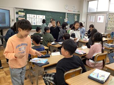 4年生の外国語活動では、Do you know~?の会話を、活動を取り入れながら、楽しく表現することができていました。