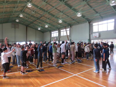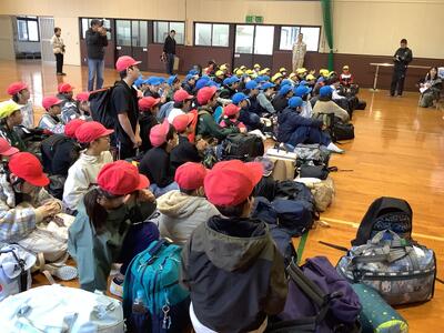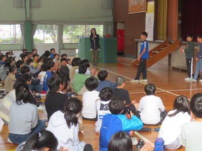 5年生が明日からの自然教室に向けて、頑張る気持ちを発表していました。