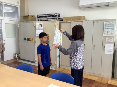 今日の20分休みに、校長室で多読賞の表彰を行いました。50冊、100冊、200冊、たくさんの本とふれあって、心を豊かにしています。