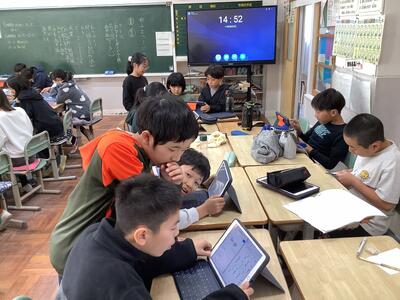 5年生社会の授業では工業の学習で、自動車ができるまでについて真剣に授業に取り組んでいます。ノートにわかったことをしっかりとまとめることもできます。