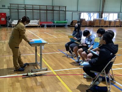 消防団に所属している方から、仕事の内容や大変なことなどをたくさん教えてもらいました。