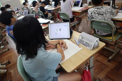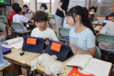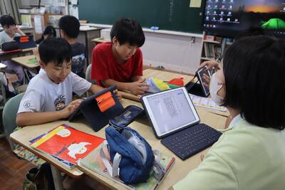 お家の人に設定してもらったipadを使って、1年生がルールを学習していました。