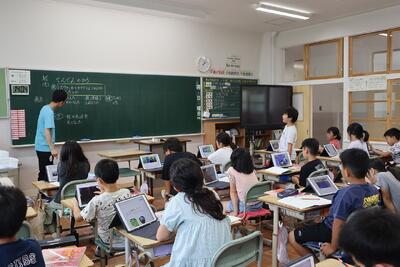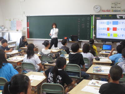 6年生の授業の様子です。さすが6年生、自分の考えをわかりやすく説明したり、集中して学習内容をノートに書いたりできます。
