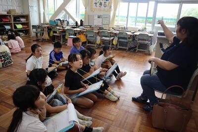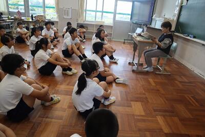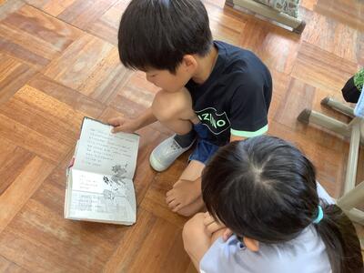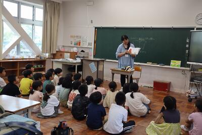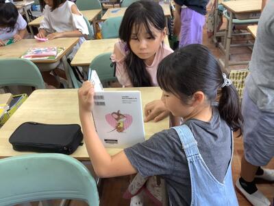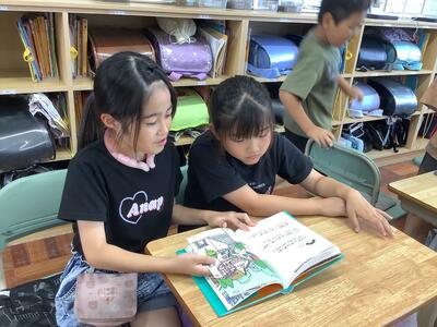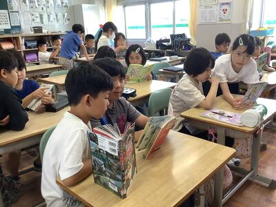 暑い昼休み、4年生が3年生に読み聞かせをしていました。一人一人がペアのために本を選び、練習し、読んであげていました。3年生もとても真剣に聞いてくれました。読書旬間です。たくさん本を読みたいですね。