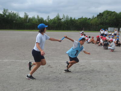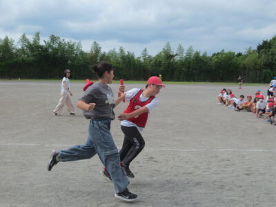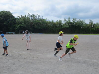 5年生の学年集会です。リレーを行いました。「頑張れー」「いいぞー」「頼むー」と元気な応援も。盛り上がりました。