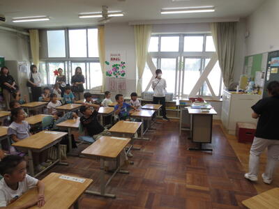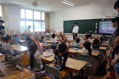 4年生の教室では、すごろくをしながら、会話を楽しんだり、ハイタッチをして交流したりしていました。こまを進めながら、夏休みの思い出やこれからも目標を伝える場面をありました。久しぶりの学級での時間を思う存分楽しんでいる様子が伝わってきました。